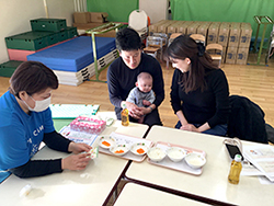 栄養士による離乳食の作り方や、0歳児担当の保育士による離乳食の食べさせ方など、実際に子どもに離乳食を食べさせている映像を見ながら、自由に相談できる時間を持ちます。